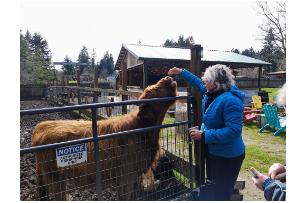Roberta feeding a Scottish Highland Cow