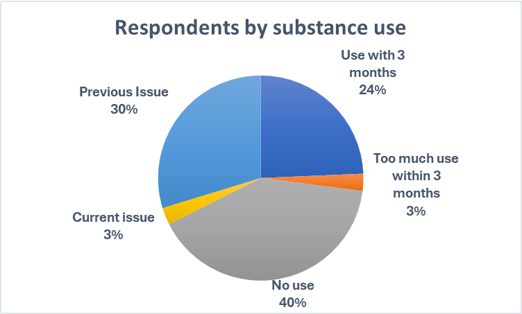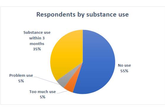 The method we are using uses a normal Likert scoring system from 1 to 5 (1-not at all, 2-slightly, 3moderately, 4-quite, 5-very). There are 27 satisfaction questions in three categories. There are 13 questions in the hardship category that cover three additional categories. The substance abuse items are yes or no questions. No are scored as zero and yes is scored as one. The numbers are multiplied by the question number to provide appropriate weighting. For example, an answer of yes on the third answer will be scored as 3. The substance abuse section includes four yes-no questions. In this section no answers equal zero and yes answers equal one. Every answer is multiplied by the number of the question. For instance, if all questions are answered yes it will equal 10. This total is added to the total hardship score.